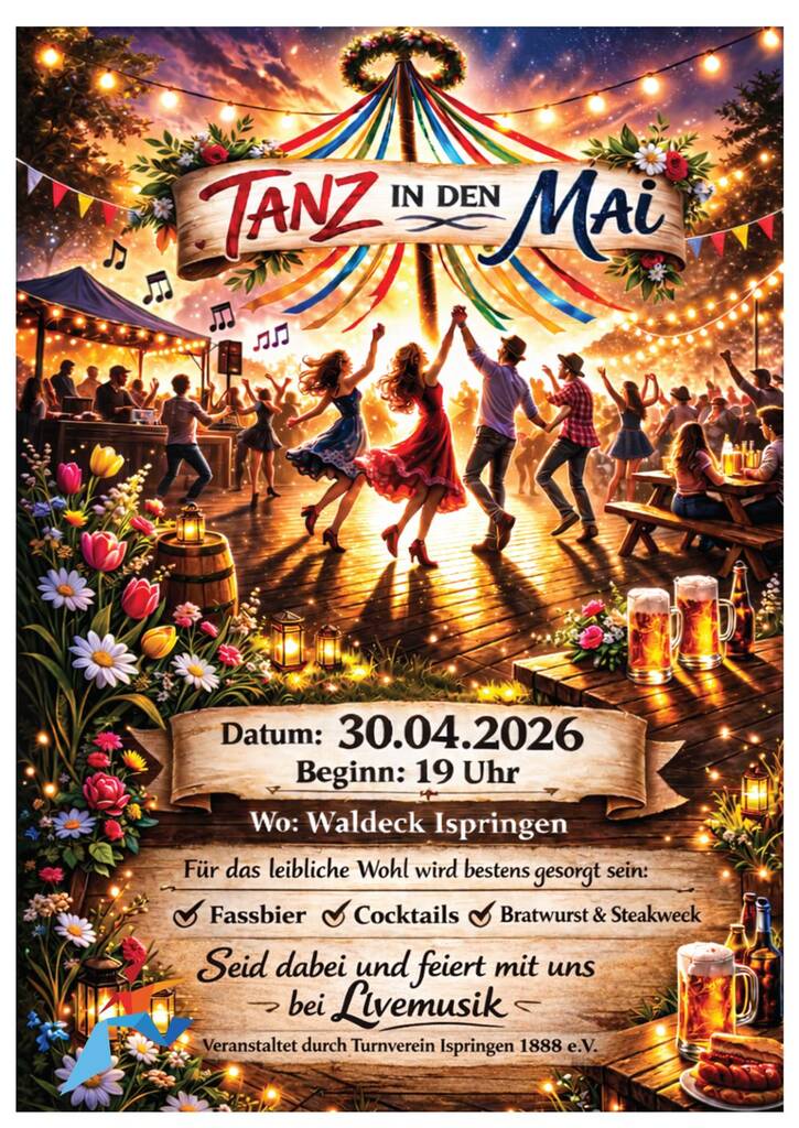 Der Frühling ist da, und wir lassen es ordentlich krachen! Der Turnverein Ispringen 1888 e.V. lädt herzlich zur großen Maifeier ein. Packt eure Freunde ein und feiert mit uns gemeinsam in den Wonnemonat hinein.