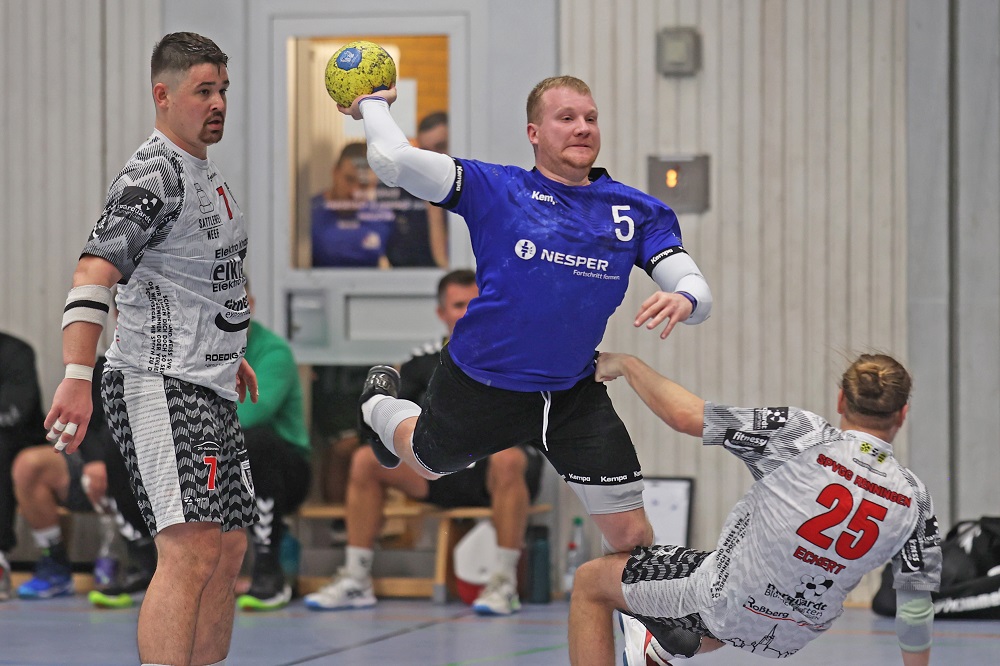 Nach dem Wechsel blieb das Spiel offen. Die Führung wechselte regelmäßig und ca. 8 Minuten vor dem Ende lagen die Gäste mit 2 Treffern in Front. Eine doppelte Überzahl (während der gesamten Partie die einzige Überzahlsituation) brachte dann aber die Wende. In einer hektischen Schlussphase gewann man am Ende glücklich aber nicht unverdient mit 29:27 und konnte zwei wichtige Zähler im Kampf gegen den Klassenerhalt verbuchen.